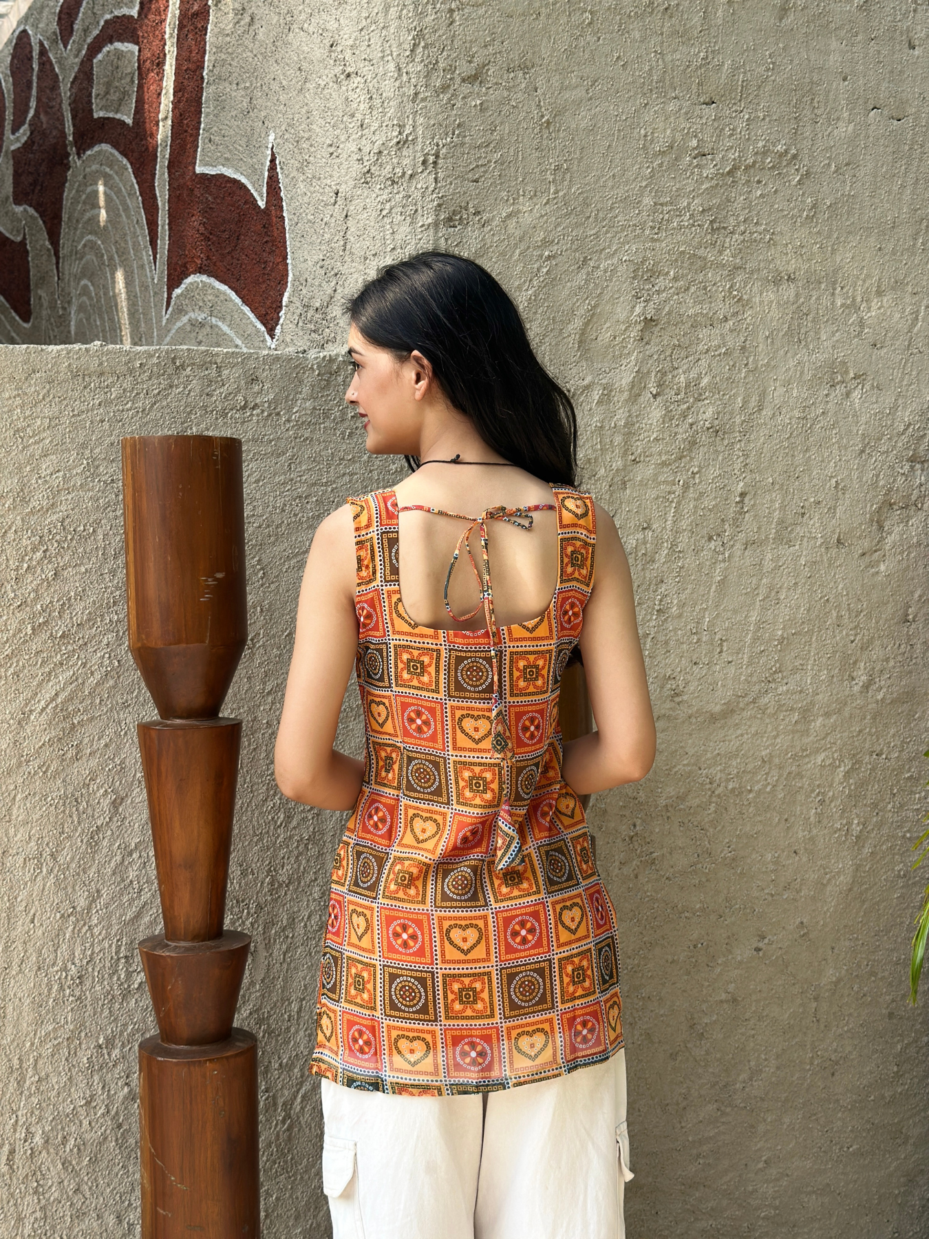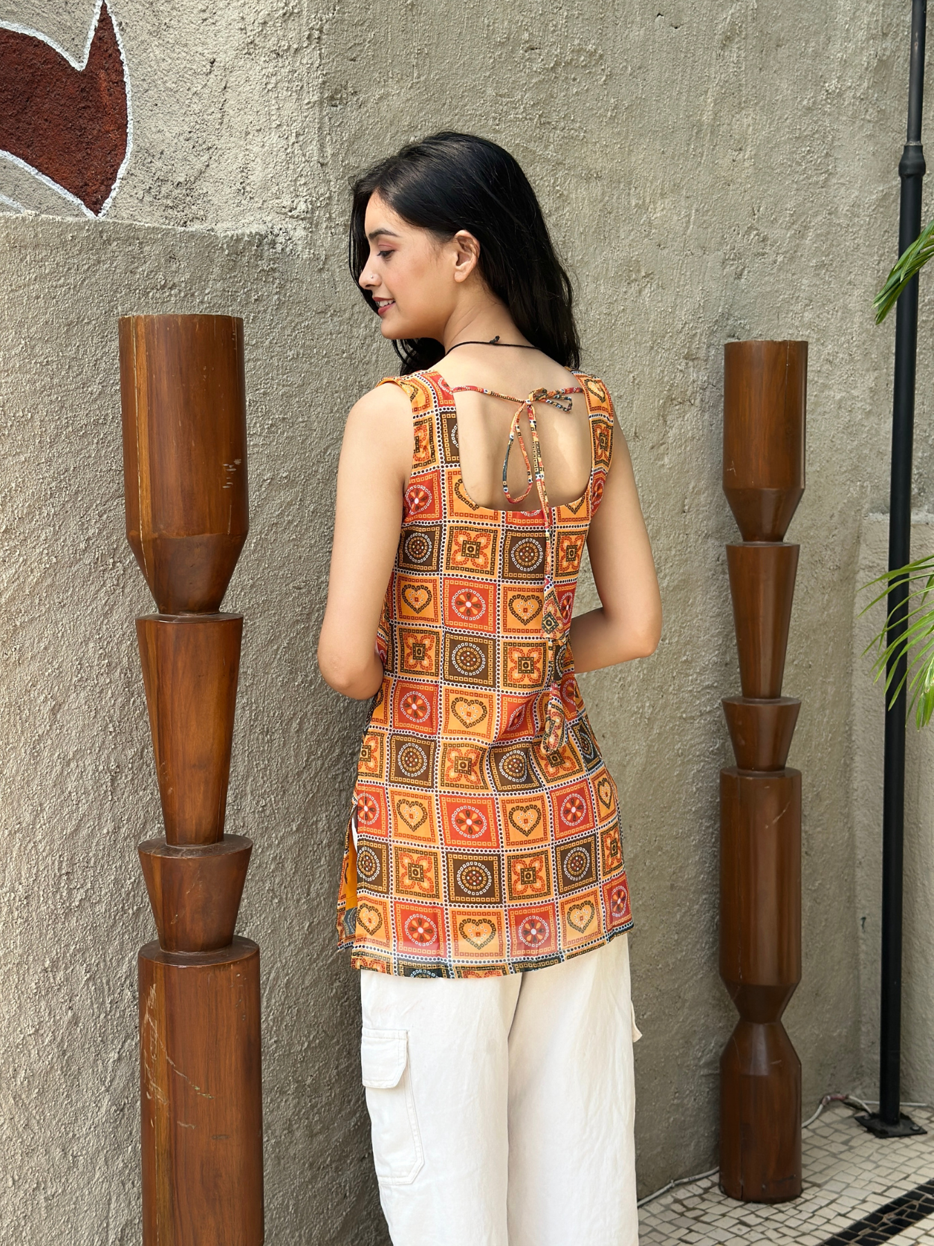 Rust orange Sleeveless Short Kurti