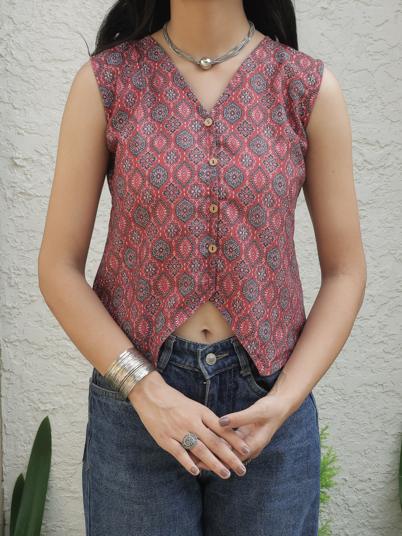 Stay cool and stylish with this Sleeveless Cotton V-Neck Short Top, crafted from soft, breathable cotton for all-day comfort. The elegant V-neckline adds a flattering touch, while the sleeveless design keeps it perfect for warm weather. Its easy, relaxed fit makes it ideal for daily wear, outings, or layered looks. Pair it effortlessly with jeans, shorts, or skirts for a chic and minimal vibe. A versatile wardrobe essential for every season.