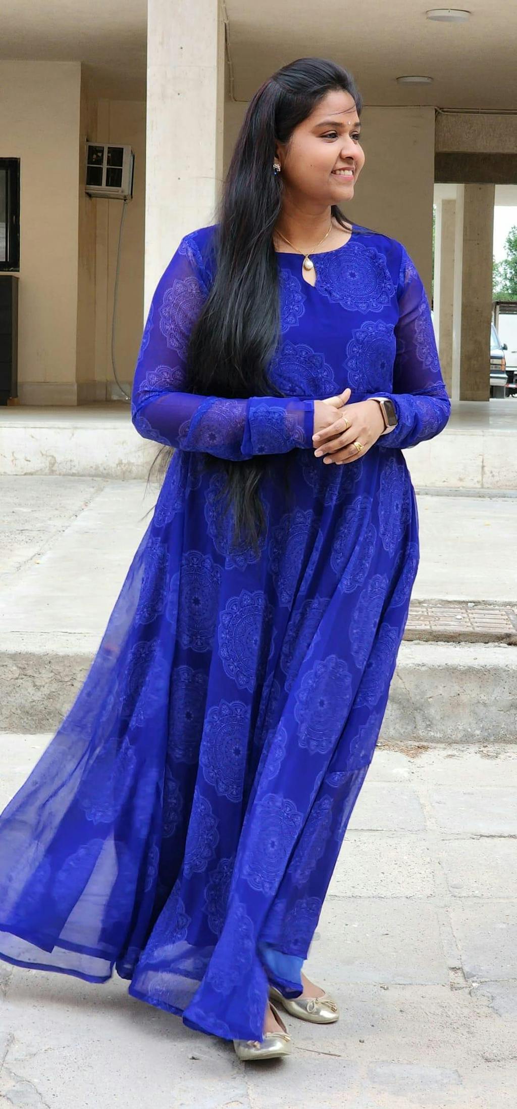 Navy Blue Colour Rangoli Print Flared Long Gown