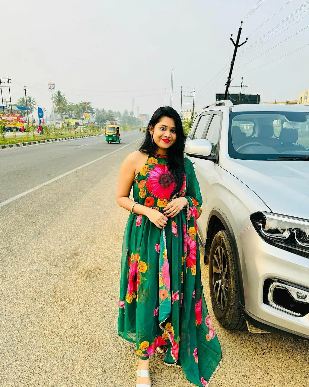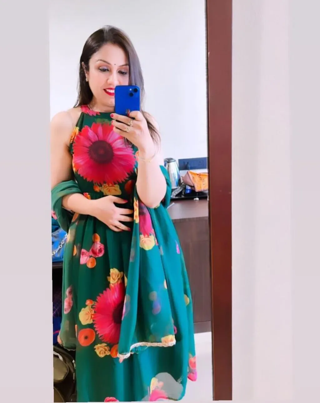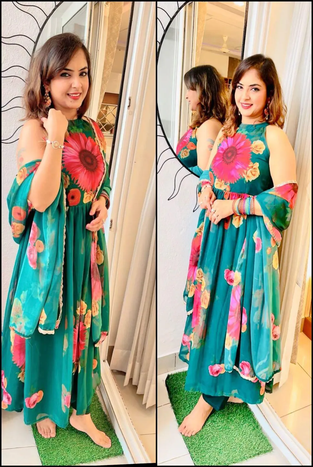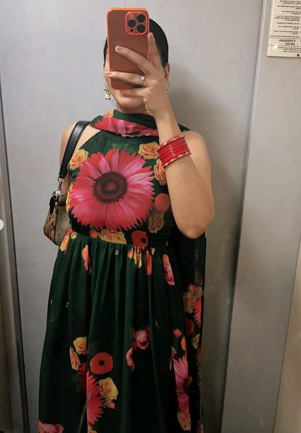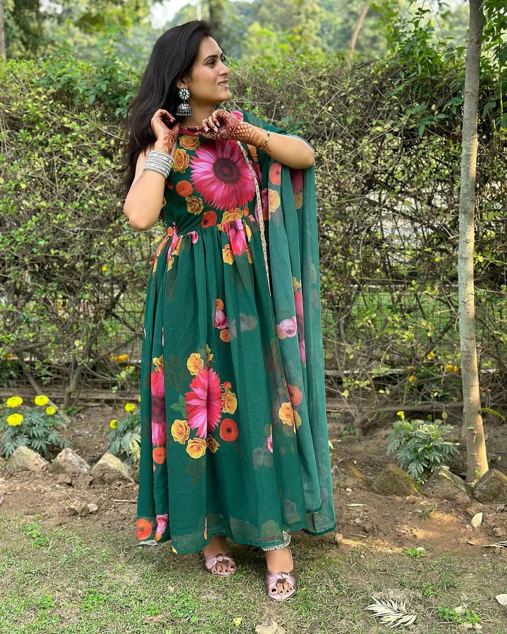 Green Floral Print Georgette Anarkali Kurta Set